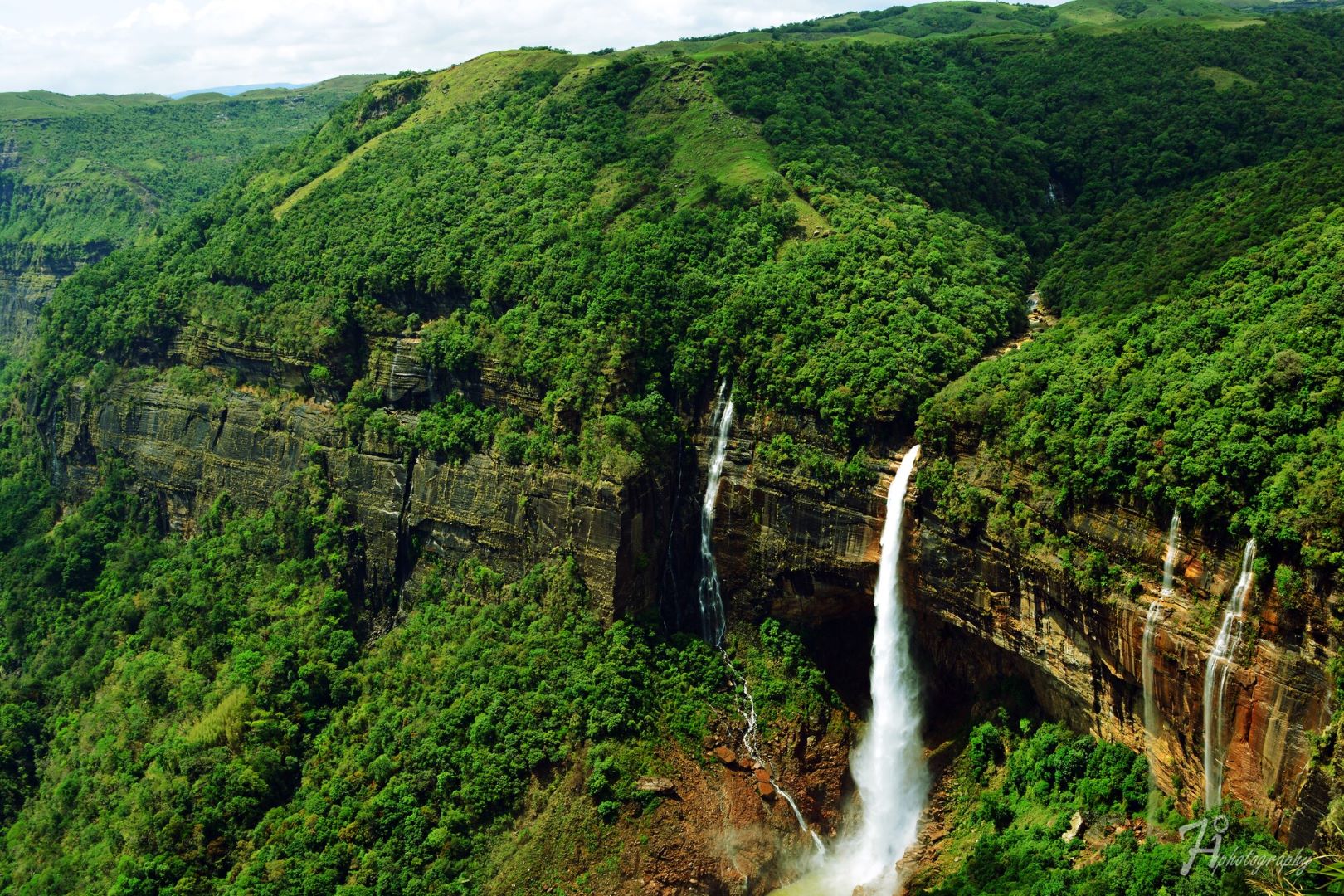 Breathtaking view of green valleys and waterfalls from a nature travel package in North East India